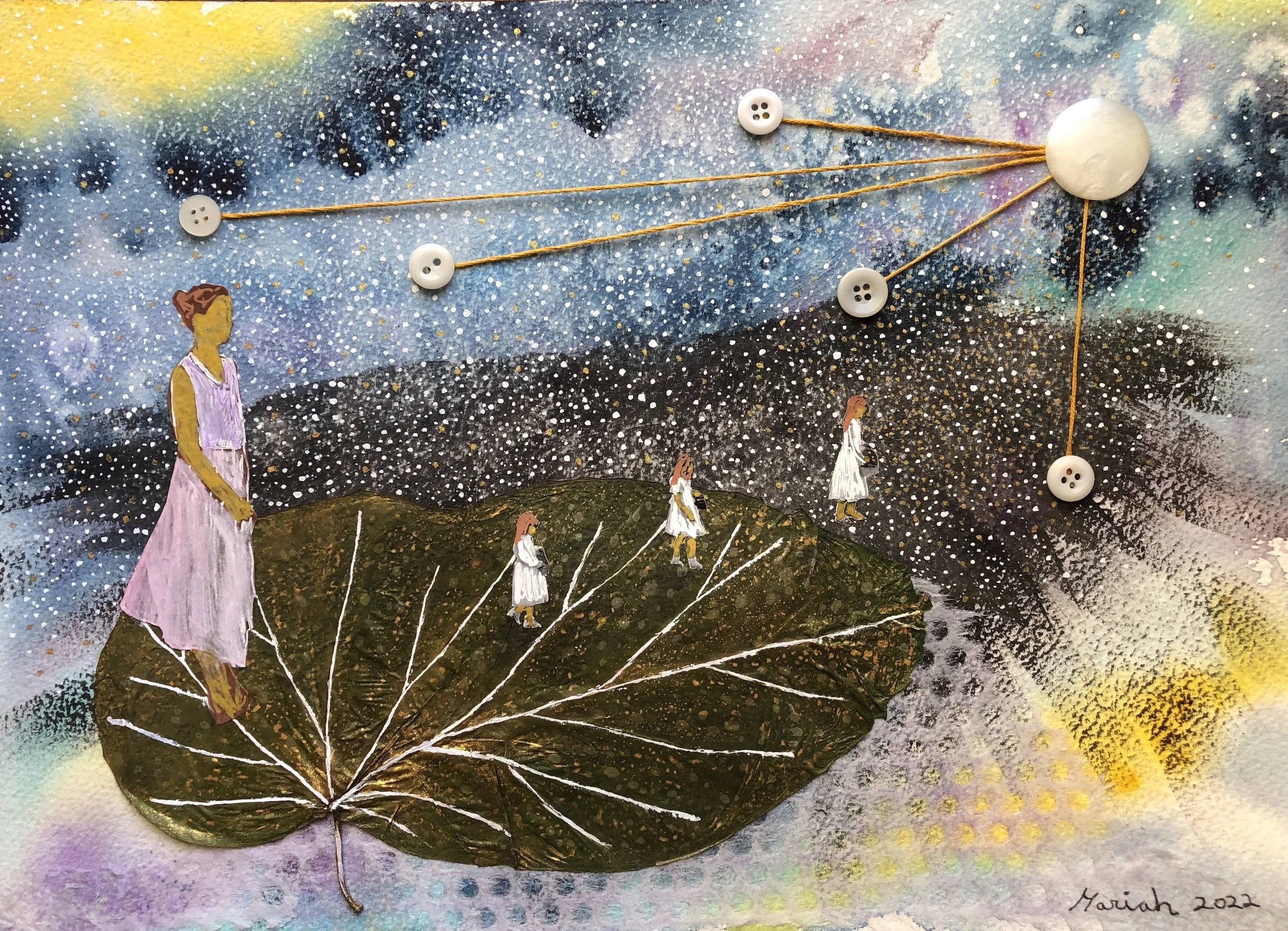 You give yourself away. Mixed media collage with pressed lotus leaf. $ 625